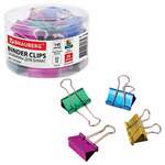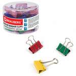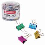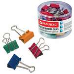 Зажимы для бумаг BRAUBERG, КОМПЛЕКТ 24 шт., 32 мм, на 140 листов, цветные, в пластиковом цилиндре, 221129