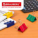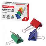 Зажимы для бумаг BRAUBERG, КОМПЛЕКТ 12 шт., 51 мм, на 230 листов, цветные, картонная коробка, 224474