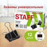 Зажимы для бумаг STAFF "EVERYDAY", КОМПЛЕКТ 12 шт., 25 мм, на 100 листов, черные, картонная коробка, 224607