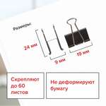 Зажимы для бумаг STAFF "EVERYDAY", КОМПЛЕКТ 12 шт., 19 мм, на 60 листов, черные, картонная коробка, 224606