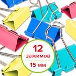 Зажимы для бумаг STAFF "Profit", КОМПЛЕКТ 12 шт., 15 мм, на 45 листов, цветные, картонная коробка, 229050
