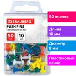 Силовые кнопки-гвоздики BRAUBERG, цветные, 50 шт., в пластиковой коробке, 221117