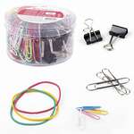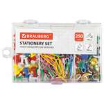 Набор BRAUBERG, зажимы 19 мм/15 шт., скрепки 28 мм/145 шт. и 50 мм/50 шт., резинки 40 шт., 223515