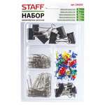 Набор STAFF "Profit", зажимы 19 и 25 мм по 6 шт., скрепки 28 мм/60 шт., 50 мм/30 шт., кнопки-гвоздики 50 шт., блистер, 226255