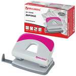Дырокол BRAUBERG "Delta", до 20 листов, с резиновой накладкой, серый, розовая вставка, 222558