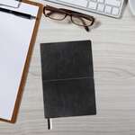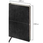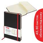 Блокнот А5 (148x218 мм), BRAUBERG "Office", под кожу, 80 л., резинка, клетка, черный, 111027