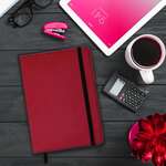 Блокнот А5 (148x218 мм), BRAUBERG "Office", под кожу, 80 л., резинка, клетка, красный, 111030