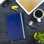 Блокнот А5 (148x218 мм), BRAUBERG "Metropolis", балакрон, 80 л., резинка, клетка, синий, 111582