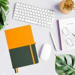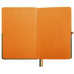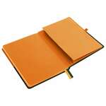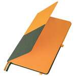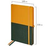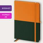Блокнот А5 (148х218 мм), BRAUBERG "DUO" под кожу с резинкой, 80 л., клетка, оранжевый/зеленый, 113435