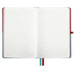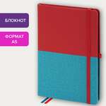 Блокнот А5 (148х218 мм), BRAUBERG "DUO", под кожу с резинкой 80 л., клетка, красный/бирюзовый, 113431