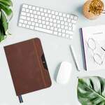 Блокнот А5 (162х218 мм), BRAUBERG "NOTE", под кожу софт-тач, с резинкой, 80 л., клетка, коричневый, 113436