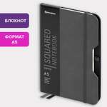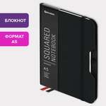 Блокнот А5 (162х218 мм), BRAUBERG "NOTE", под кожу софт-тач, с резинкой, 80 л., клетка, черный, 113437