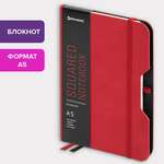 Блокнот А5 (162х218 мм), BRAUBERG "NOTE", под кожу софт-тач, с резинкой, 80 л., клетка, красный, 113439