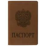 Обложка для паспорта STAFF, мягкий полиуретан, "ГЕРБ", светло-коричневая, 237609