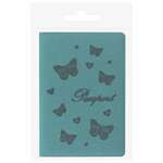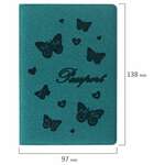 Обложка для паспорта STAFF, бархатный полиуретан, "Бабочки", мятно-бирюзовая, 237617