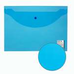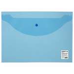 Папка-конверт с кнопкой STAFF, А4, до 100 листов, прозрачная, синяя, 0,12 мм, 224623