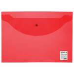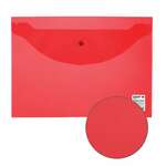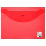Папка-конверт с кнопкой STAFF, А4, до 100 листов, прозрачная, красная, 0,12 мм, 225172