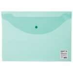 Папка-конверт с кнопкой STAFF, А4, до 100 листов, прозрачная, зеленая, 0,12 мм, 225171