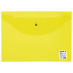 Папка-конверт с кнопкой STAFF, А4, до 100 листов, прозрачная, желтая, 0,12 мм, 226031