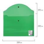 Папка-конверт с кнопкой БОЛЬШОГО ФОРМАТА (305х435 мм), А3, прозрачная, зеленая, 0,18 мм, BRAUBERG, 224033