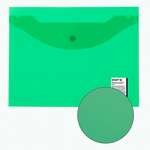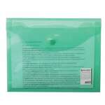 Папка-конверт с кнопкой МАЛОГО ФОРМАТА (240х190 мм), А5, прозрачная, зеленая, 0,18 мм, BRAUBERG, 224025