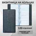 Визитница на кольцах BRAUBERG "Cayman", на 240 визиток, под кожу крокодила, черная, 231763