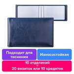 Визитница однорядная BRAUBERG "Imperial", на 20 визиток, под гладкую кожу, темно-синяя, 232060