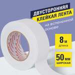 Клейкая двухсторонняя лента 50 мм х 8 м, НА ВСПЕНЕННОЙ ОСНОВЕ, 1 мм, прочная, BRAUBERG, 600485