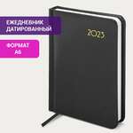 Ежедневник датированный 2023 МАЛЫЙ ФОРМАТ 100х150 мм А6, BRAUBERG "Select", балакрон, черный, 113928