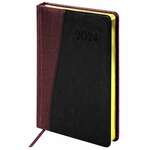 Ежедневник датированный 2024 А5 138x213 мм BRAUBERG "Chameleon", под кожу, черный/красный, 114925