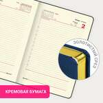 Ежедневник датированный 2024 А5 138x213 мм BRAUBERG "Goldy", под кожу, цветной срез, синий, 114978