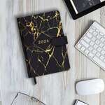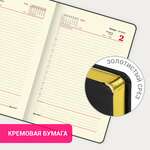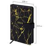Ежедневник датированный 2024 А5 138x213 мм BRAUBERG "Goldy", под кожу, цветной срез, черный, 114979