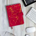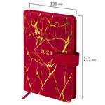 Ежедневник датированный 2024 А5 138x213 мм BRAUBERG "Goldy", под кожу, цветной срез, красный, 114980