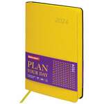 Ежедневник датированный 2024 А5 138x213 мм BRAUBERG "Stylish", под кожу, желтый, 114894