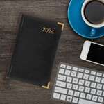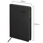 Ежедневник датированный 2024 А5 138x213 мм BRAUBERG "Stylish", под кожу, черный, 114889