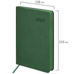 Ежедневник датированный 2024 А5 138x213 мм BRAUBERG "Stylish", под кожу, гибкий, зеленый, 114896