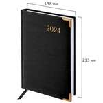 Ежедневник датированный 2024 А5 138x213 мм BRAUBERG "Senator", под кожу, черный, 114886