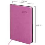 Ежедневник датированный 2024 А5 138x213 мм BRAUBERG "Stylish", под кожу, гибкий, розовый, 114891