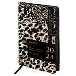 Ежедневник датированный 2024 А5 138x213 мм BRAUBERG "Vista", под кожу, "Leopard", 114951