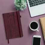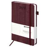 Ежедневник датированный 2024 А5 138x213 мм BRAUBERG "Wood", под кожу, держатель для ручки, бордовый, 114900