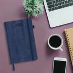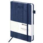 Ежедневник датированный 2024 А5 138x213 мм BRAUBERG "Wood", под кожу, держатель для ручки, синий, 114899