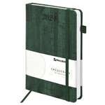 Ежедневник датированный 2024 А5 138x213 мм BRAUBERG "Wood", под кожу, держатель для ручки, зеленый, 114902