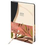 Ежедневник датированный 2024 А5 138x213 мм BRAUBERG "Vista", под кожу, гибкий, Flower delight, 114950