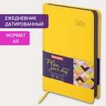 Ежедневник датированный 2024 А5 138x213 мм, BRAUBERG "Rainbow", под кожу, желтый, 114875