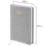 Ежедневник датированный 2024 А5 138x213 мм, BRAUBERG "Sparkle", под кожу, блестки, серебристый, 114934