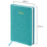 Ежедневник датированный 2024 А5 138x213 мм, BRAUBERG "Sparkle", под кожу, блестки, бирюзовый, 114931