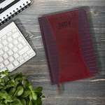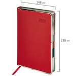 Ежедневник датированный 2024 А5 138х213 мм BRAUBERG "Swirl", под кожу, держатель для ручки, красный, 114995