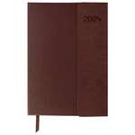 Ежедневник датированный 2024 А5 138х213 мм BRAUBERG "Swirl", под кожу, держатель для ручки, коричневый, 114994