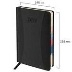 Ежедневник датированный 2024 А5 138х213 мм BRAUBERG "Pocket", под кожу, карман, держатель для ручки, черный, 114988