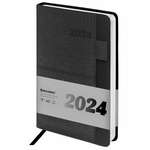 Ежедневник датированный 2024 А5 138х213 мм, BRAUBERG "Swirl", под кожу, держатель для ручки, серый, 114996